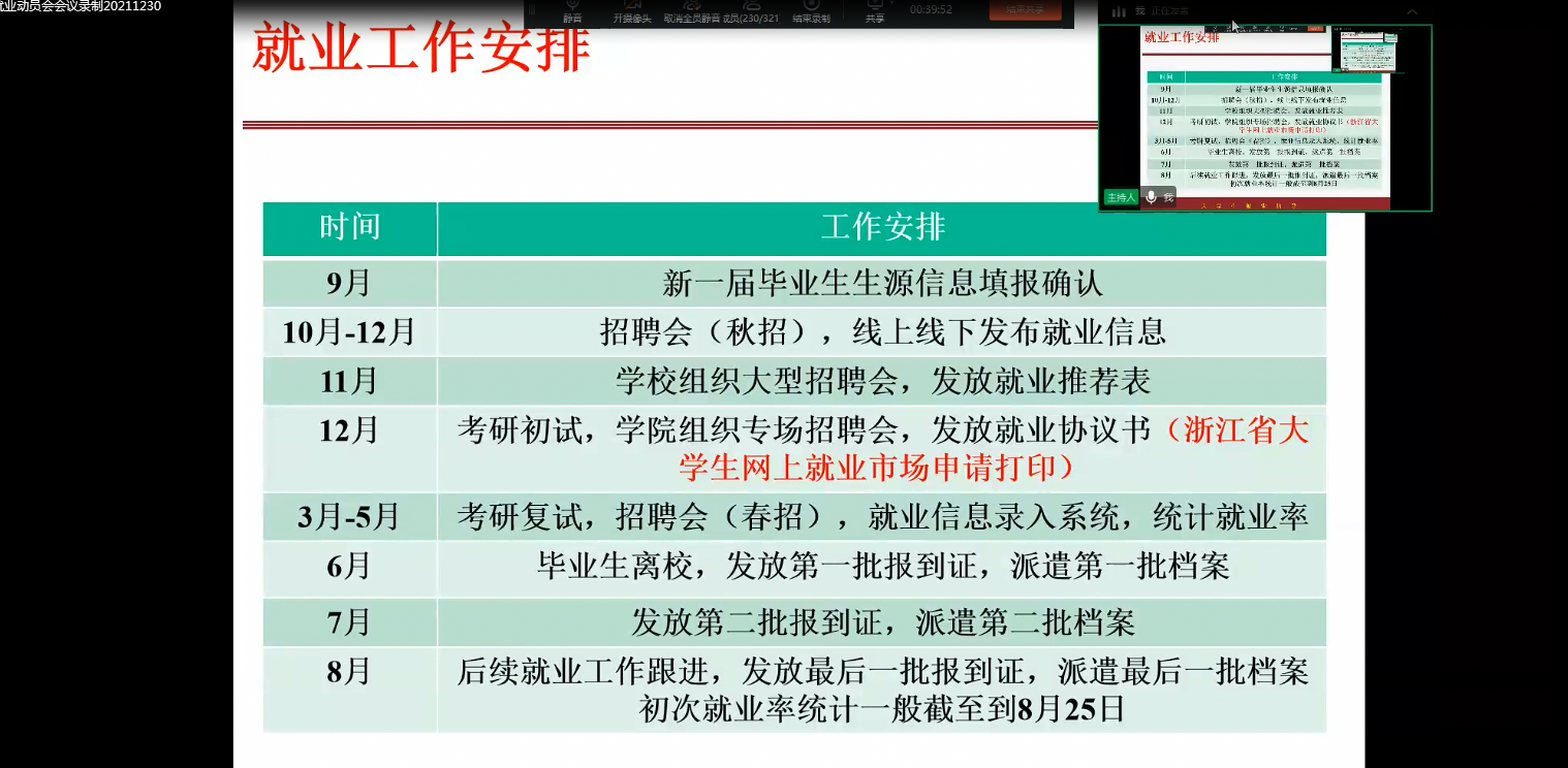 2021年12月30日中午12:30,生化麻豆视频 通过线上会议形式召开2022届毕业生就业动员会,生化麻豆视频 党委副书记蔡运男老师、学工办辅导员潘佳豪老师以及2022届全体毕业生参加了本次会议。