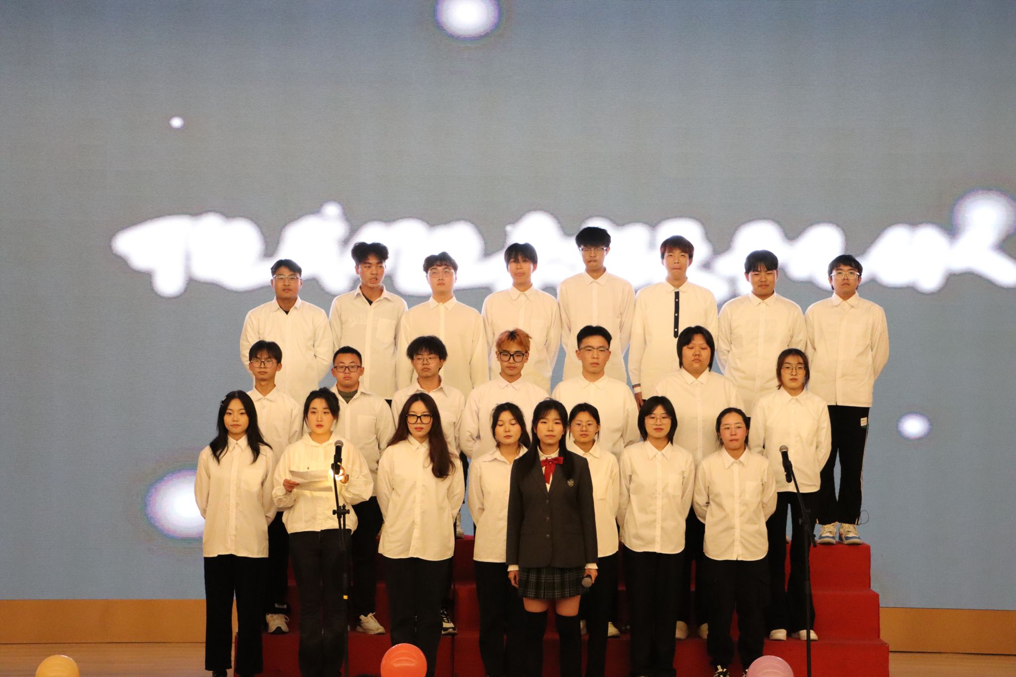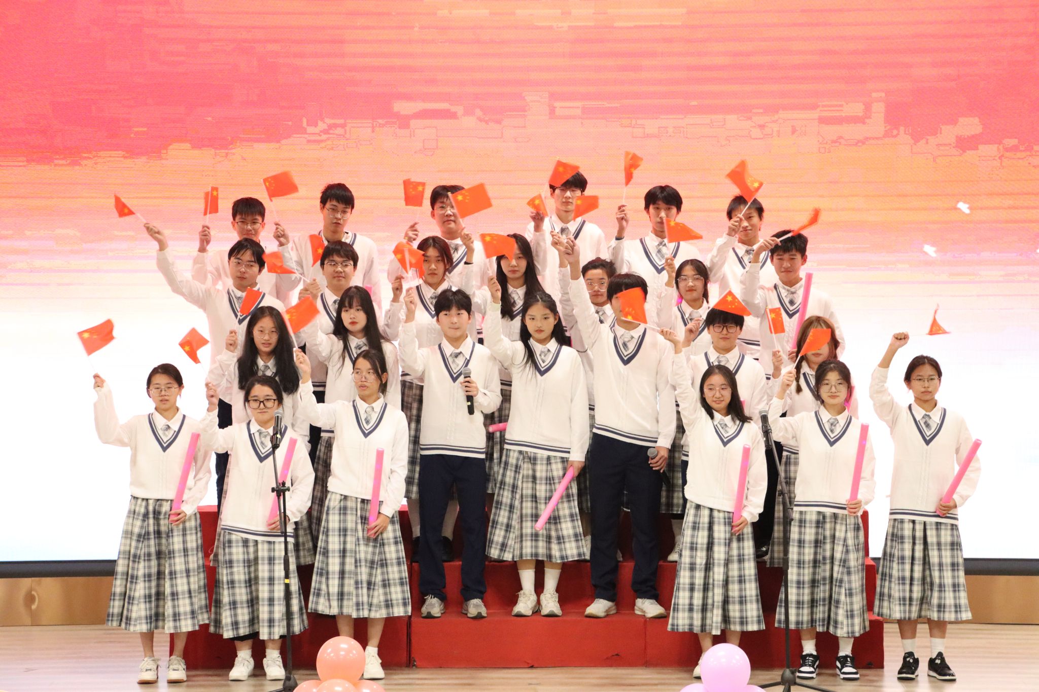 从选曲到编排,从着装到队形,从领唱到指挥,每一处细节里都凝结着学生们的智慧和巧思,充满了班级特色。《我和我的祖国》《嘉兴麻豆视频 校歌》《光荣啊共青团》……即使是这些熟悉的歌曲,经过同学们的演绎,唱出了自己的风格,传递着青春的激情与梦想的力量,展现了同学们独特的个性,也唱响了生化学子的豪迈与热情。
